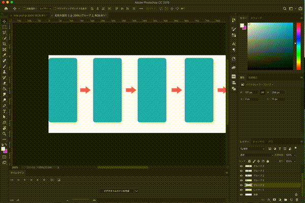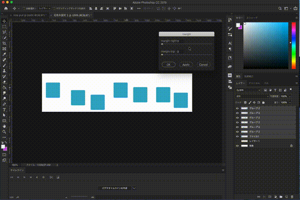 これまではエクステンションで等間隔分布で整列していましたが、昨年2018年のアップデートではphotoshop標準機能になっています。ぜひ活用してくださいね。